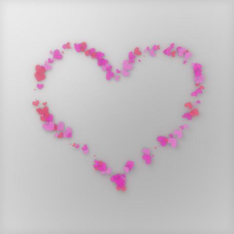 A pink heart made of small hearts along the contour of a large one on a light background. Illustration