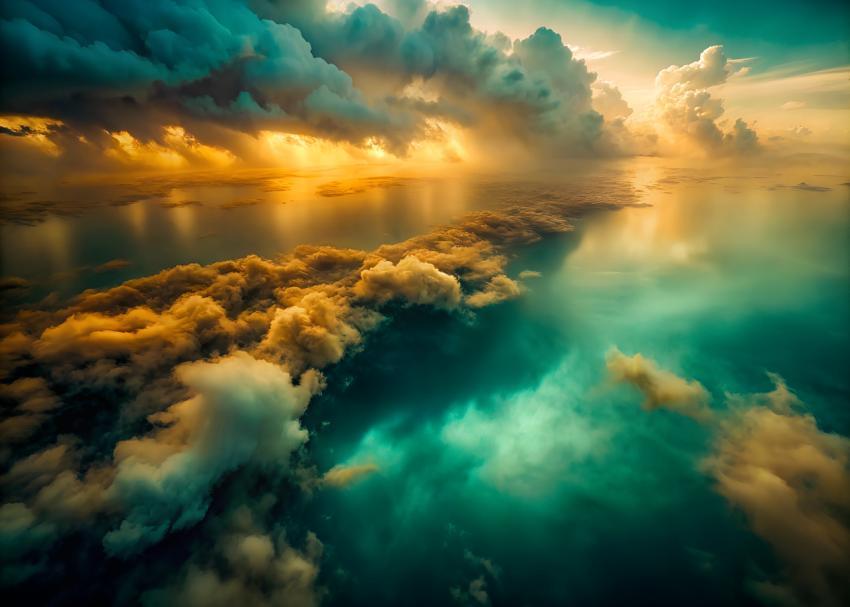 abstract sky dark turquoise and light gold drone p