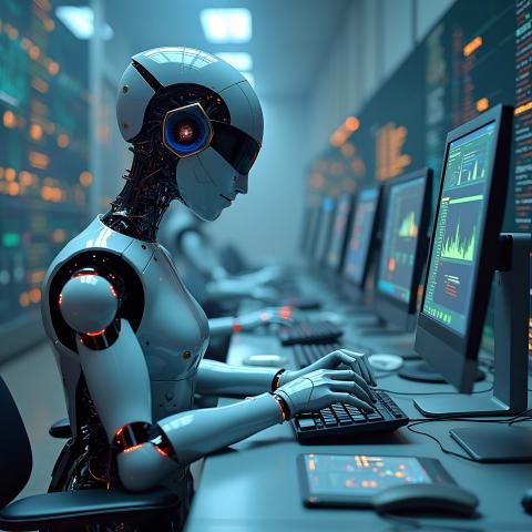 An image illustrating the concept of artificial intelligence, advanced technologies, and digital innovation. The visual represents elements of machine learning, neural networks, and AI-driven automation. It highlights the symbiotic relationship between humans and intelligent systems, showcasing the transformative potential of AI in the modern world.