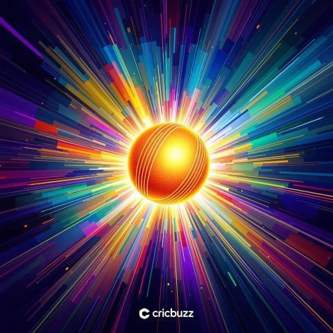 A vibrant cricket ball soaring through a trail of glowing light, representing the energy and excitement of cricket. Cricbuzz captures this dynamic spirit in every moment of the game.