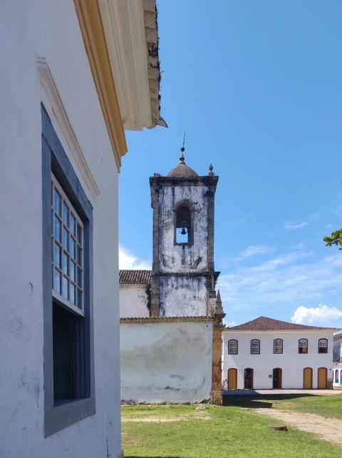 Paraty, Rio de Janeiro, Brazil, February 6, 2025, side view of the Church of Santa Rita in the historic city center.