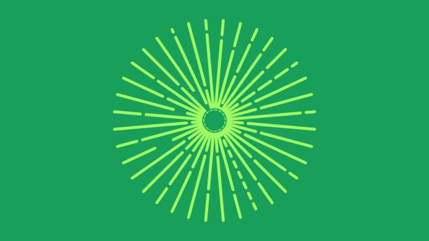 Yellow lines of different lengths are arranged around a dotted circle on a green background
