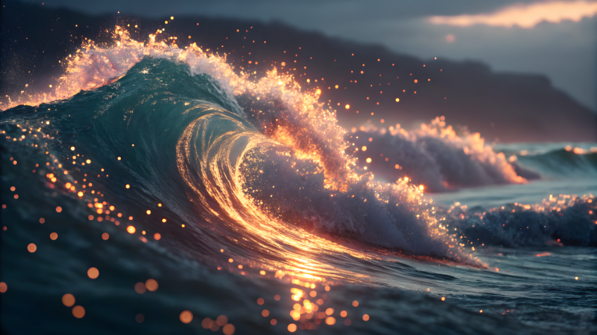 ocean wave glowing light particles sunset bioluminescence fantasy surreal dreamy sea water motion splash sunset glow magic light seascape horizon ocean wave glowing ocean beach twilight vibrant water glimmer energy mystical tranquil peaceful nature colorful golden hour pink sunset deep sea luminescent natural beauty aquatic visual art fantasy ocean light reflection ethereal shimmering digital art fantasy seascape dreamy water sparkling sea creative depth of field magical ocean waves crashing cinematic ocean peaceful wave soft focus abstract oceanSimilar Photos