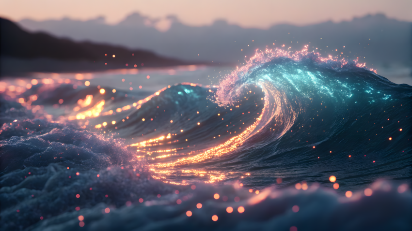 ocean wave glowing light particles sunset bioluminescence fantasy surreal dreamy sea water motion splash sunset glow magic light seascape horizon ocean wave glowing ocean beach twilight vibrant water glimmer energy mystical tranquil peaceful nature colorful golden hour pink sunset deep sea luminescent natural beauty aquatic visual art fantasy ocean light reflection ethereal shimmering digital art fantasy seascape dreamy water sparkling sea creative depth of field magical ocean waves crashing cinematic ocean peaceful wave soft focus abstract oceanSimilar Photos