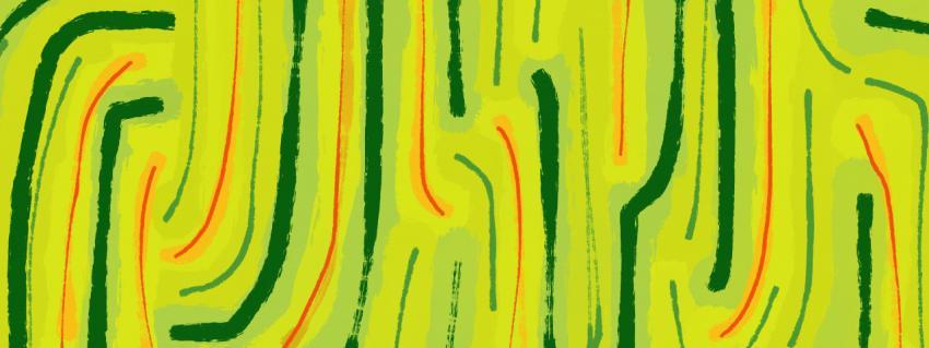 Hand drawn abstraction on textured white paper Green and yellow lines
