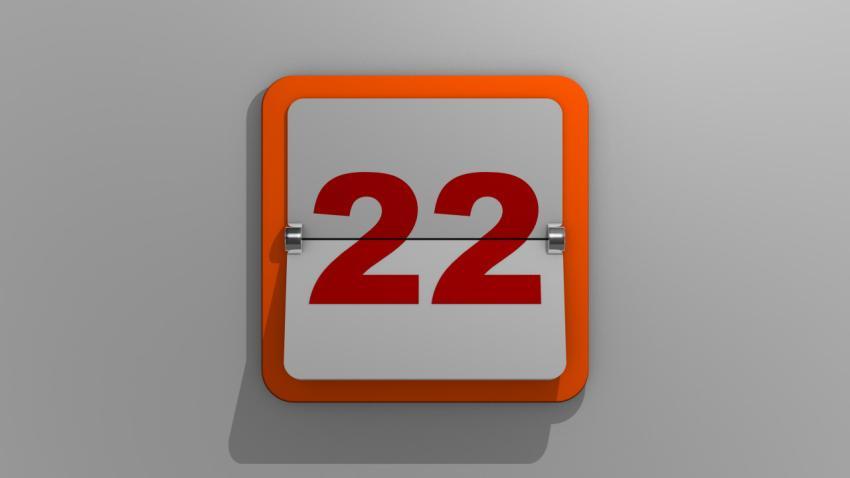 Stylish 3D rendering of a calendar depicting the twenty-second day. 3d illustration of 22 days of the week or holidays and events. Slide number twenty two.