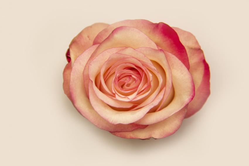 Close-up of a cream-colored live rose bud on a white background