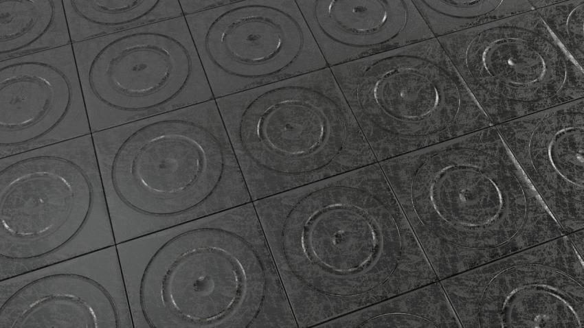 Tile with the texture of broken metal Perspective Extruded ring patterns