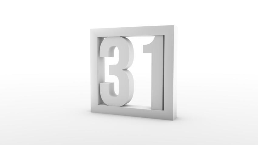 Simple minimalistic calendar. Day thirty-first. Number 31 in a frame. 3d rendering, 3d illustration.