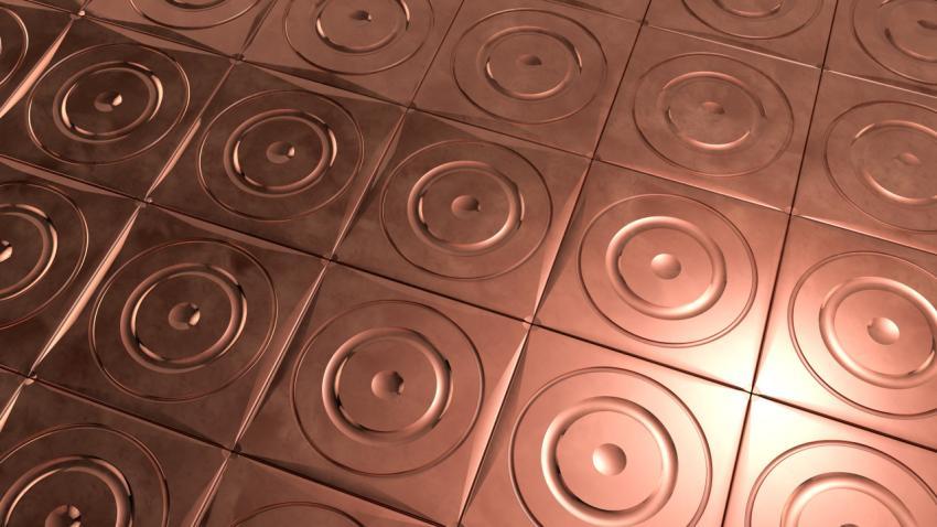 Tile with a copper metal texture Perspective Extruded ring patterns