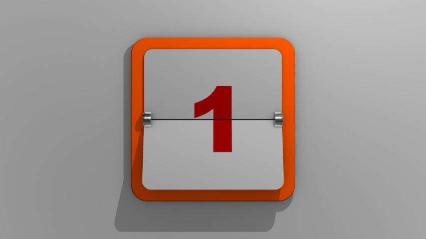 Stylish 3D rendering of a calendar depicting the first day. 3d illustration of 1 day of the week or holiday and events. Slide number one.