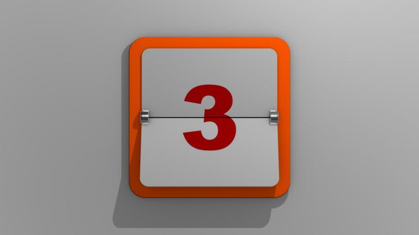 Stylish 3D rendering of a calendar depicting the third day. 3d illustration of 3 days of the week or holiday and events. Slide number three.