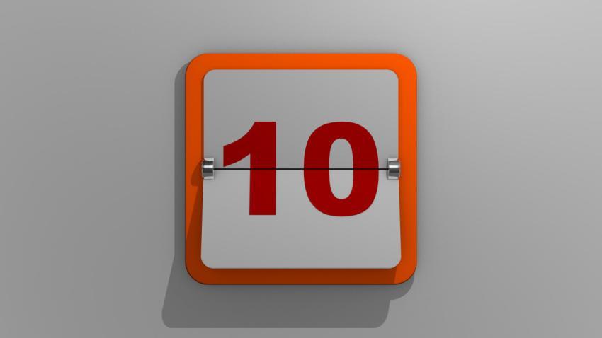 Stylish 3D rendering of the tenth day calendar. 3d illustration of 10 day of the week or holiday and events. Slide number ten.