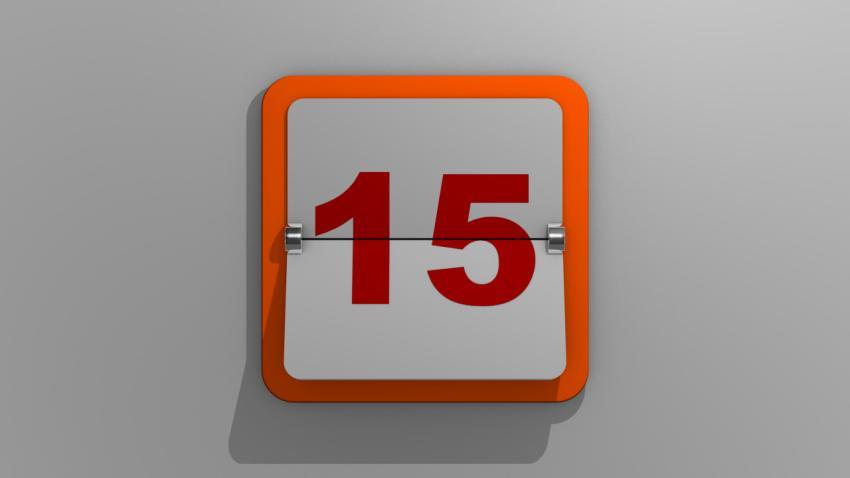 Stylish 3D rendering of a calendar depicting the fifteenth day. 3d illustration of the 15th day of the week or holiday and events. Slide number fifteen.