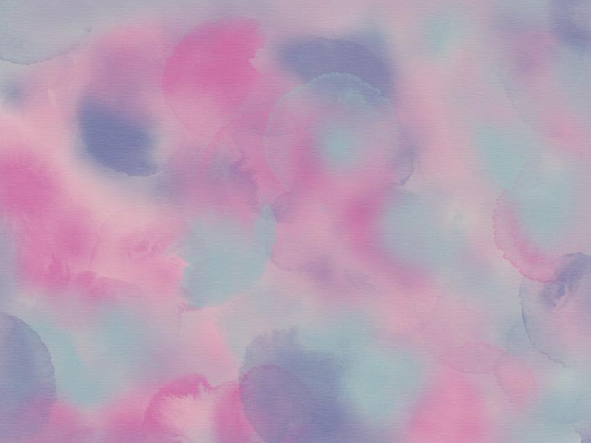 Watercolor background in blue pink and purple colors, soft pastel color splash and blotches with fringe bleed painting in abstract clouds shapes with paper texture