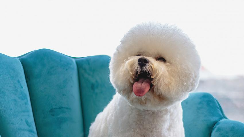 Dog looking at camera after hair brushing at professional grooming service