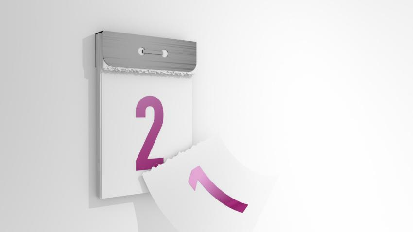 3d rendering of a minimalistic tear-off calendar. 3d illustration of changing days from 1 to 2. Falling page of the past day.
