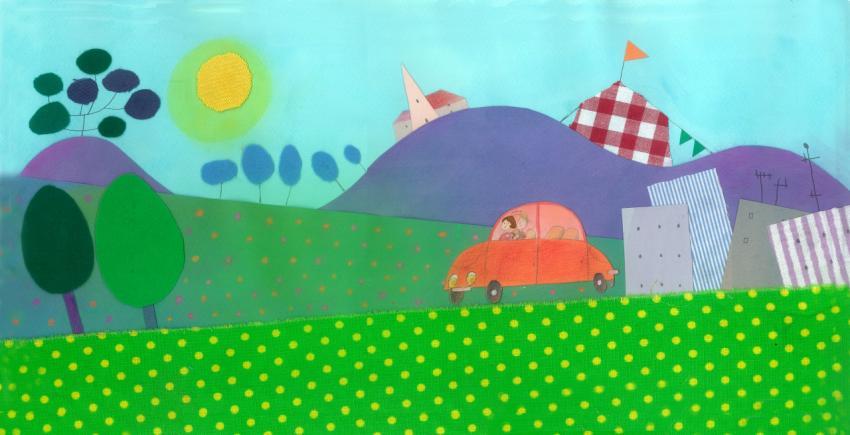 pictplace car landscape driving colorful bright textile collage paper crayons watercolor road illustration trip family patternSimilar Photos