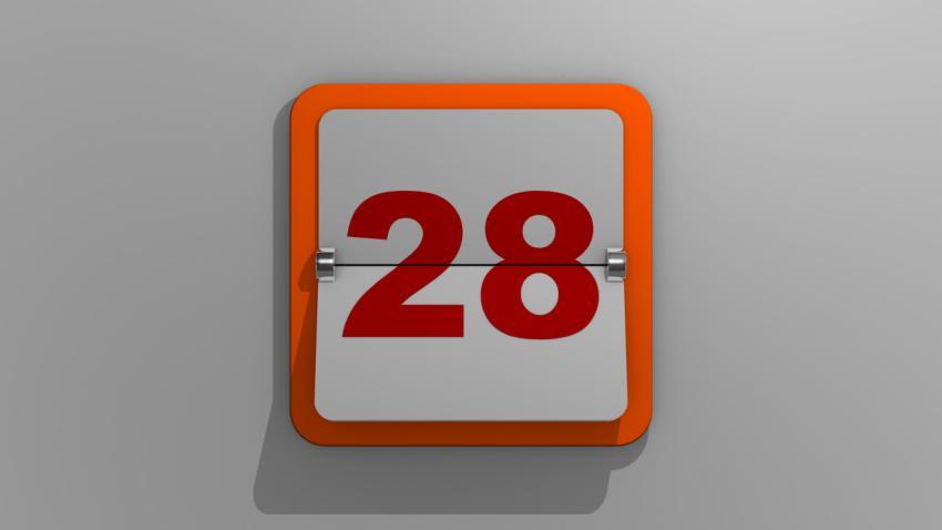 Stylish 3D rendered calendar depicting the twenty-eighth day. 3d illustration of the 28th day of the week or holiday and events. Slide number twenty-eight.