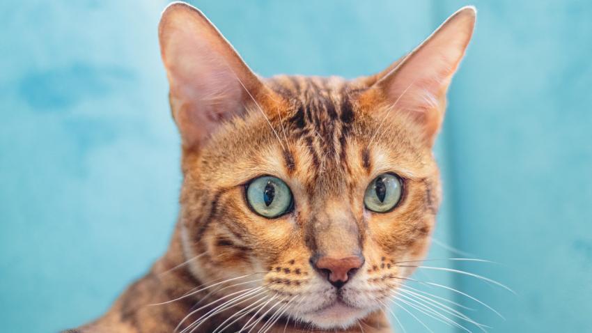 Leopard cat looking at camera at professional grooming service