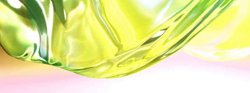 Beautiful light yellow, lemon liquid abstract background with metallic reflection and light refraction. 3D illustration, 3D rendering.