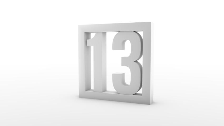 Simple minimalistic calendar. Day twentieth. Number 13 in a frame. 3d rendering, 3d illustration.