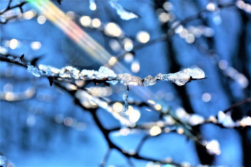 snow on a branch, light artifact