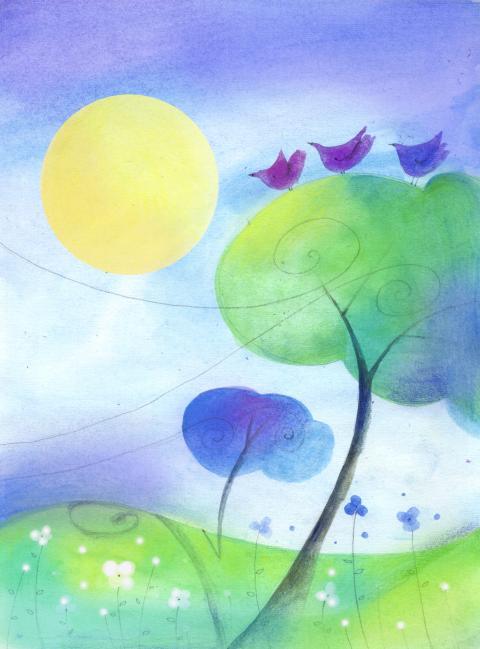 spring landscape trees meadow sun sunny flowers birds wind clear fresh sunshine nature outdoor beautiful pretty poetic illustration watercolor crayonsSimilar Photos