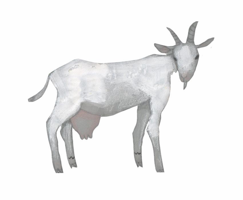 illustration in collage, watercolor and crayons of white goat