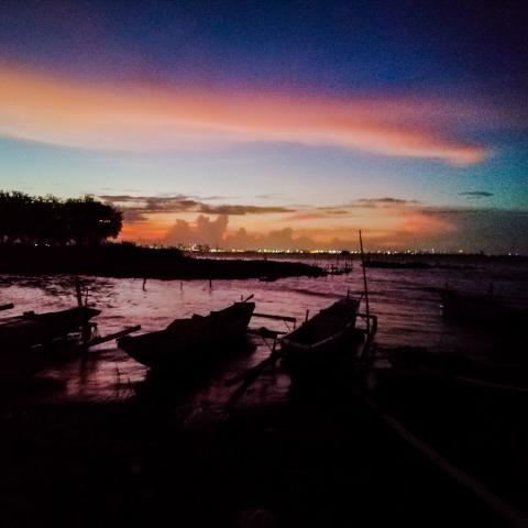 Cosmic love. Beautiful illustration, two silhouettes surrounded by particles and radiance
