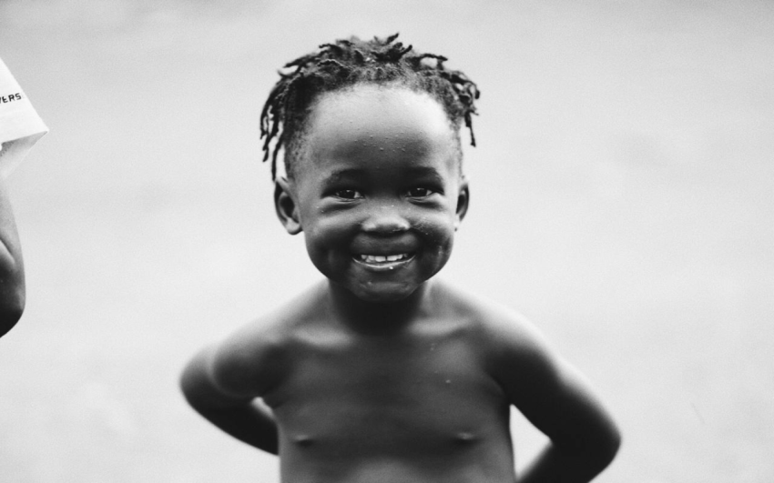 A dark-skinned beautiful woman with white make-up on her eyes is immersed in water.