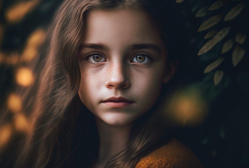 Innocent Gaze: Photorealistic Portrait of a Young Girl