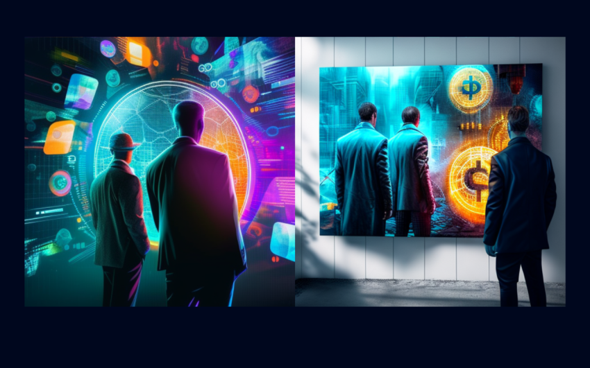 men of the future with a futuristic vision for the world of bitcoin, images with futuristic colors in large size 8k with high resolution and sharpness of the images high pix resolution image:3---V 4