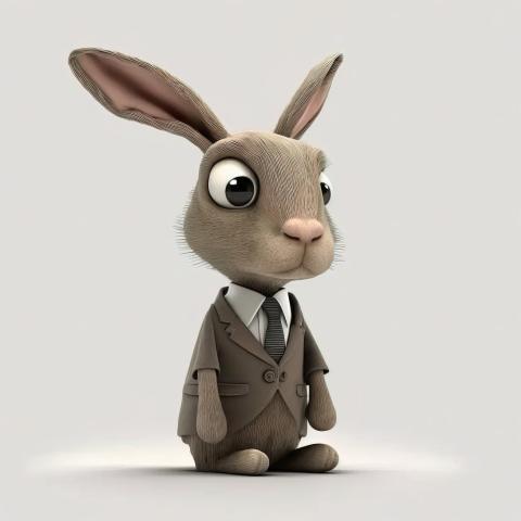 Сartoon rabbit dressed in a boss suit catches attention with its bright and friendly gaze. He stands tall against a clean white background, emphasizing his simplicity and elegance. The rabbit's large eyes and ears add charm and individuality, making him a must-have character in cartoons and comics.