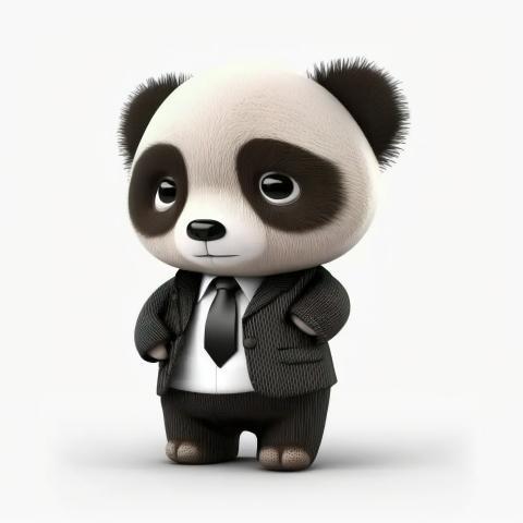 A cartoon panda dressed in a boss suit, standing on a white background