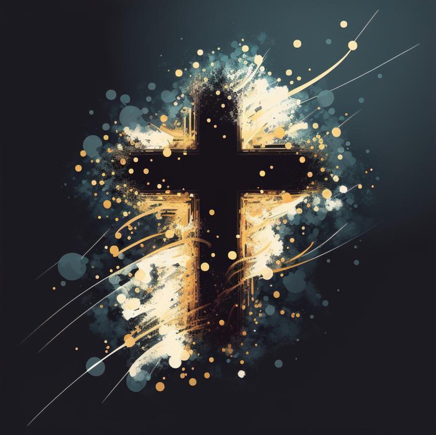 An ethereal cross seems to float in the darkness, its form a delicate balance of fluidity and structure. The lines of the cross are softened, blurred, and indistinct, as if the image has been captured in the fleeting moment between clarity and dissolution. The surface of the cross appears to have been rendered in a loose, expressive medium such as watercolor, acrylic, or oil, creating an almost dreamlike quality that is both calming and introspective. The overall effect is a gentle reminder of the enduring power of faith and the beauty that can be found in even the simplest of symbols