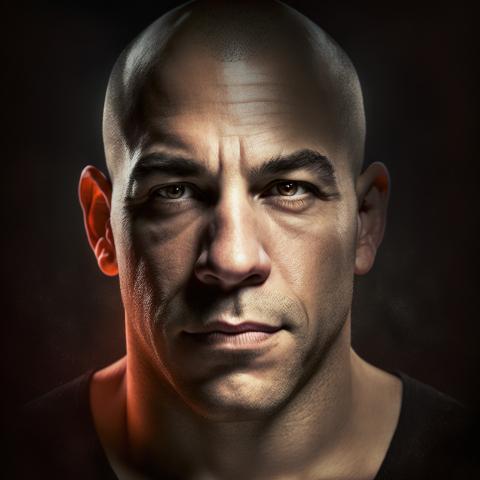 This hyper-realistic portrait of a bald man remotely resembling Vin Diesel as Dominic Toretto from Fast and Furious 10 captures the raw intensity and grit of the iconic character. While the resemblance may be vague, this portrait serves as a fitting tribute to the character that has captured the hearts of millions of fans around the world. The bald head, strong jawline, and intense gaze are all hallmarks of Diesel's portrayal of the street racer turned hero, and this portrait captures them with stunning detail. Whether you're a die-hard fan of the Fast and Furious franchise or simply drawn to the rugged, no-nonsense charisma of the Toretto character, this portrait is sure to inspire and captivate you