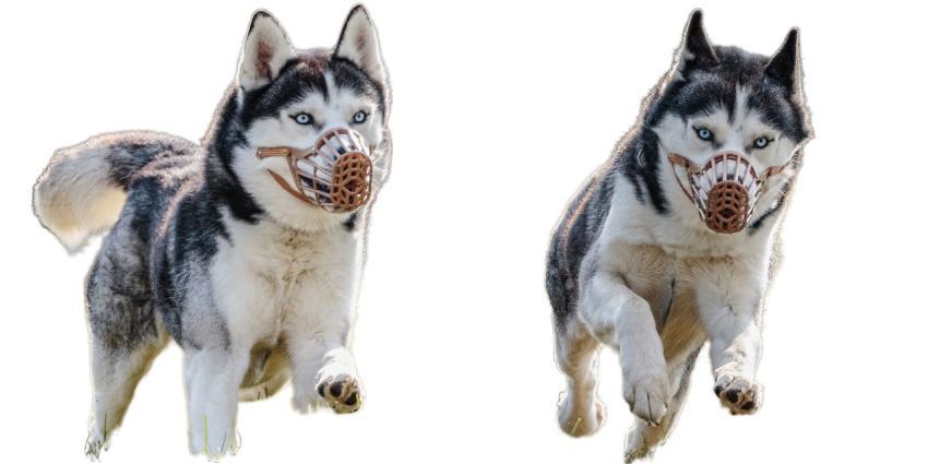 Husky dog collage running catching hunting straight on camera isolated on white background at full speed on competition