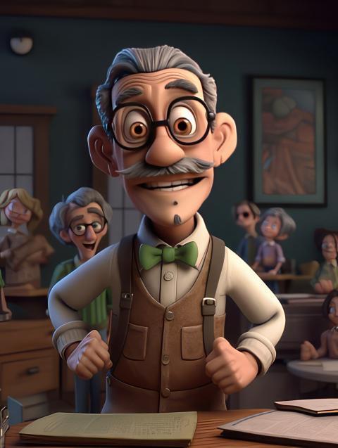 Back to school picture theme, photo a great teacher smile, 3d cartoon character