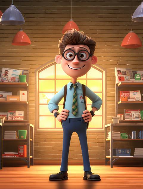 Back to school picture theme, photo a great teacher smile, 3d cartoon character