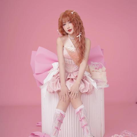 The picture of the girl was taken at the studio in Hanoi. The girl is wearing a pink short skirt, long pink socks, her hair is dyed pink-brown. The girl is sitting on a pink chair. circle, behind the girl is a pink bow to match the pink backgroud. Since she loves pink, everything she wears and decorations is pink. Owner : vutuananh Please do not copy on other network platforms without asking the owner's permission if you do not want to be punished before the law.