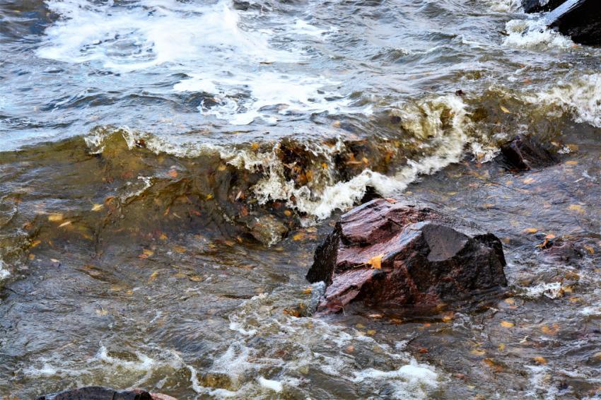 Big stone and waves