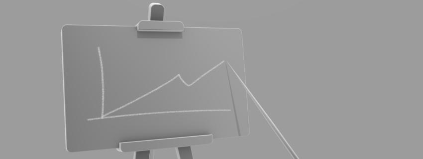 Presentation board with a pointer and a chart drawn in chalk. Stylish minimalistic render