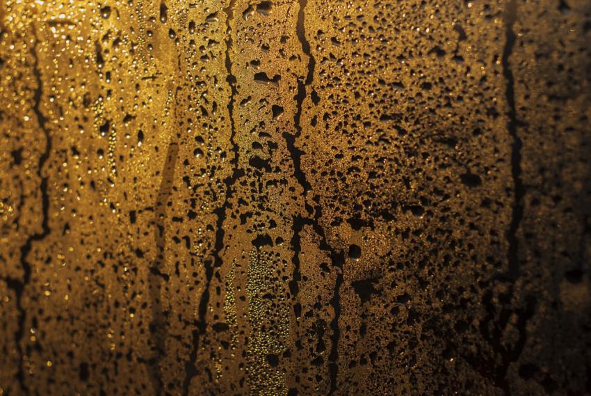 Raindrops on glass against the background of the sun