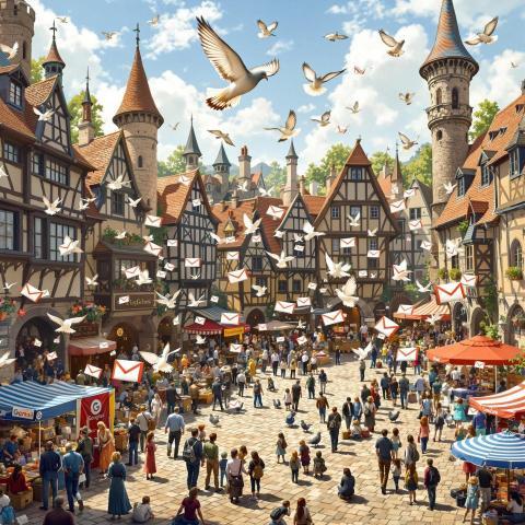 gmail pigeon delivery medieval communication gmail reimagined town square vibrant market creative messaging artistic scene gmail pigeons unique delivery historical inspiration flying messengers gmail art medieval town busy square imaginative communication historical creativity artistic storytelling bird messengers gmailinspired worldSimilar Photos