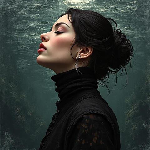 Dreamy woman wearing black