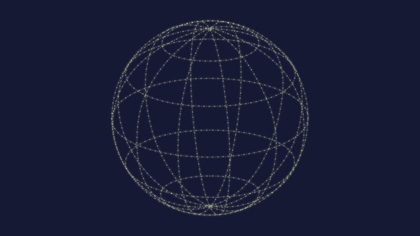 Planet created from dotted lines and ovals on a blue background with a glow effect