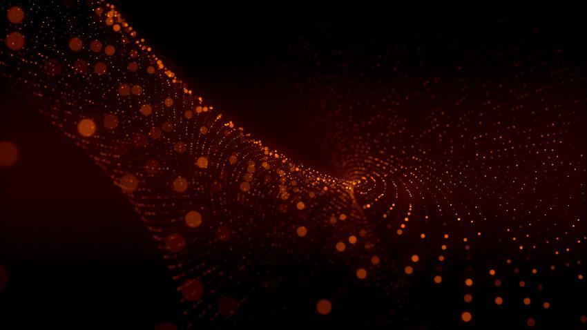 A beautiful background of particles creating an abstract wave going into the distance with a depth of field. 3D rendering, 3D illustration.
