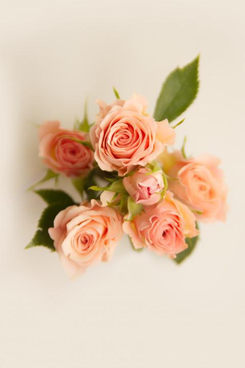 Close-up of creamy vibrant bush rose buds on white background